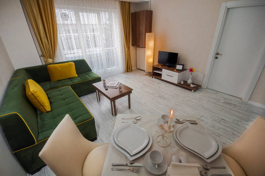 Residence, 1+1 ve 2 yetişkin kapasiteli daire seçenekleriyle, misafirlerine aylık ve yıllık olarak konaklama imkanı sunmaktadır.